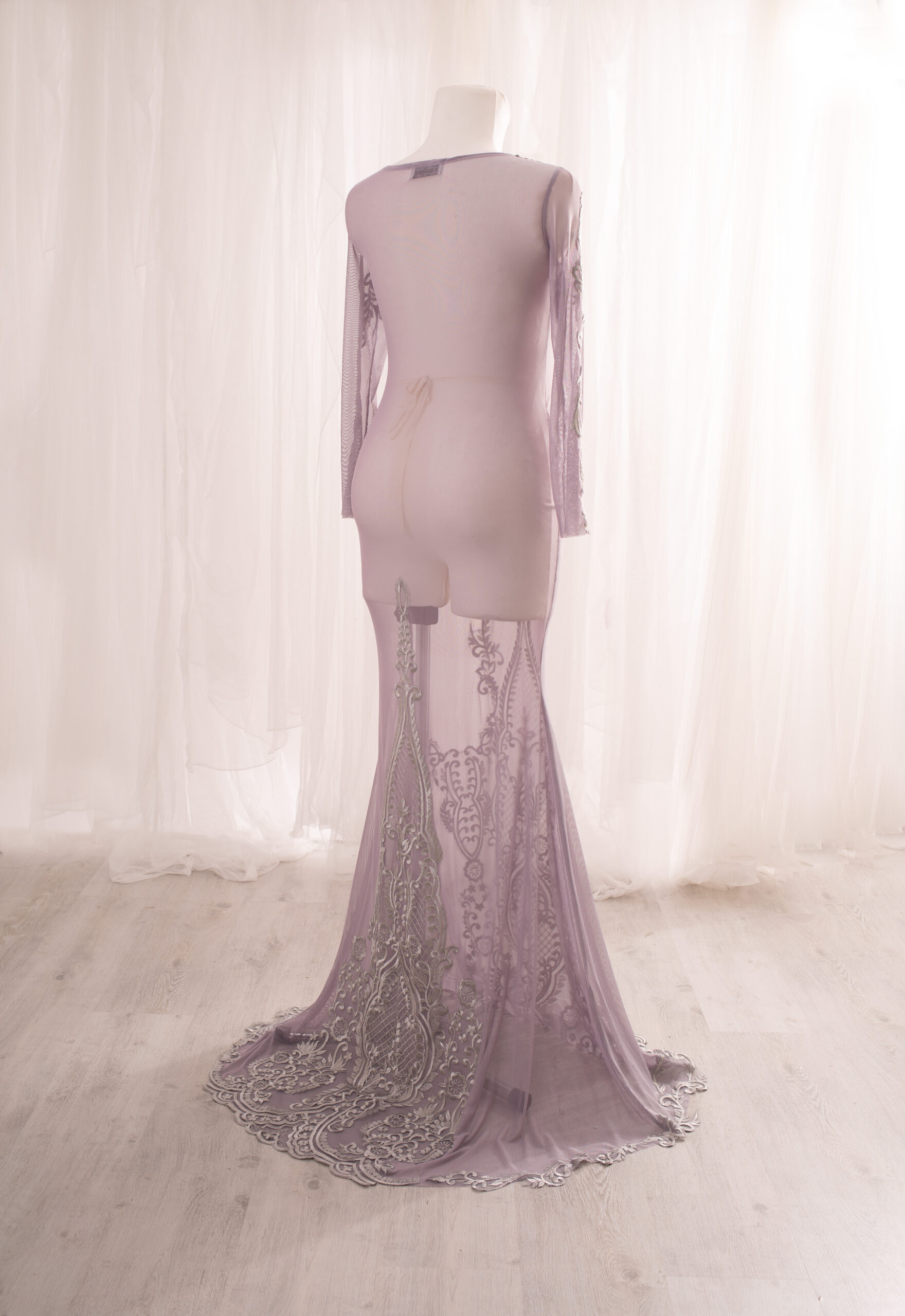 This dress is made of soft very good quality tulle. The fabric is stretching s lot. There is a beautiful lace on the front and the back of the dress.