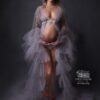 Georgia maternity dress is made of an elastic jersey. The fabric is stretching a lot. The dress is tight-fitting with a long train on the back. Low cut v-neck. Wide sleeves are made of chiffon. There is four rows of flounces. The dress looks an unique and chic. To choose your size just measure your bra.