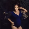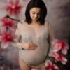Layla maternity bodysuit is made of a mesh tulle. The tulle is a very good quality, stretching a lot. The bodysuit is long sleeved. The front of the bodysuit is covered by beautiful gold sparkling flowers. A neckline is plain. The bodysuit is tight-fitting, very tasteful. I offer only one size: medium.